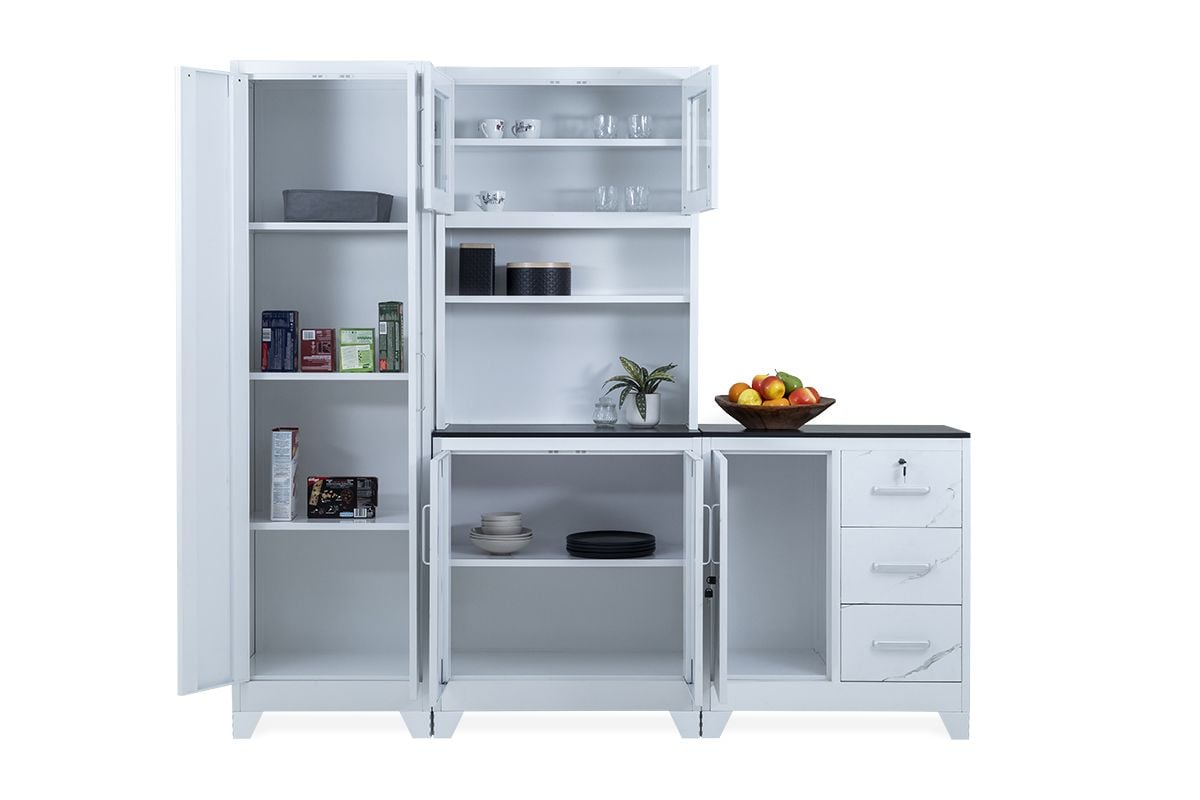 Double Pantry Metal Kitchen Unit – Marble finish